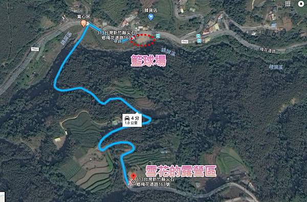 從營區開車到下方梅花道路上「小竹軒商店」對面的籃球場停車。